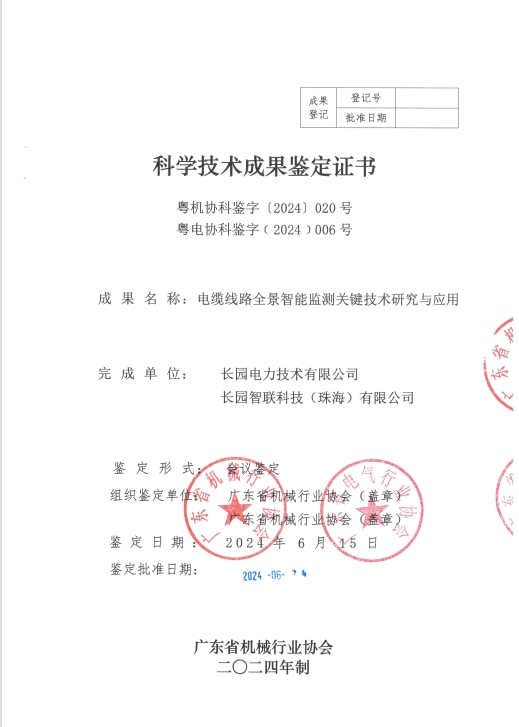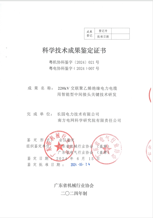 经专家组严谨论证,最终一致认为:本次申报的“220kV交联聚乙烯绝缘电力电缆用智能型中间接头关键技术研发”“电缆护层接地电流在线监测装置研发与应用”“电缆隧道智能化区域控制单元研发与应用”“电缆线路全景智能监测系统研发与应用”四项科学技术成果,鉴定资料齐全完整,项目成果具有创新性,总体技术均达到国际先进水平,一致同意通过科学技术成果鉴定。